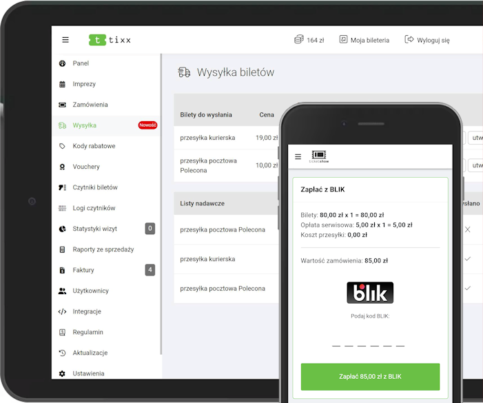 Niezwykle popularny system płatności internetowych. Dzięki integracji, po złożeniu zamówienia klient może błyskawicznie wprowadzić kod BLIK i opłacić swoje bilety.